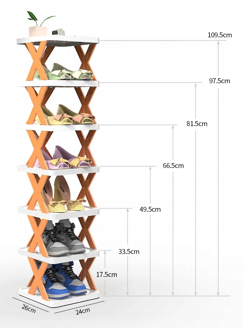 - Sześć Poziomów: Wielopoziomowa konstrukcja pozwala na uporządkowanie licznych par butów w jednym miejscu.
