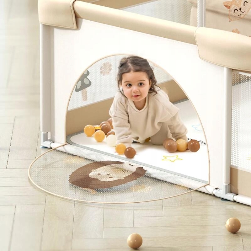 Wejście na zamek błyskawiczny: Umożliwia łatwe wchodzenie i wychodzenie z kojca, co jest szczególnie przydatne, gdy dziecko zaczyna raczkować.