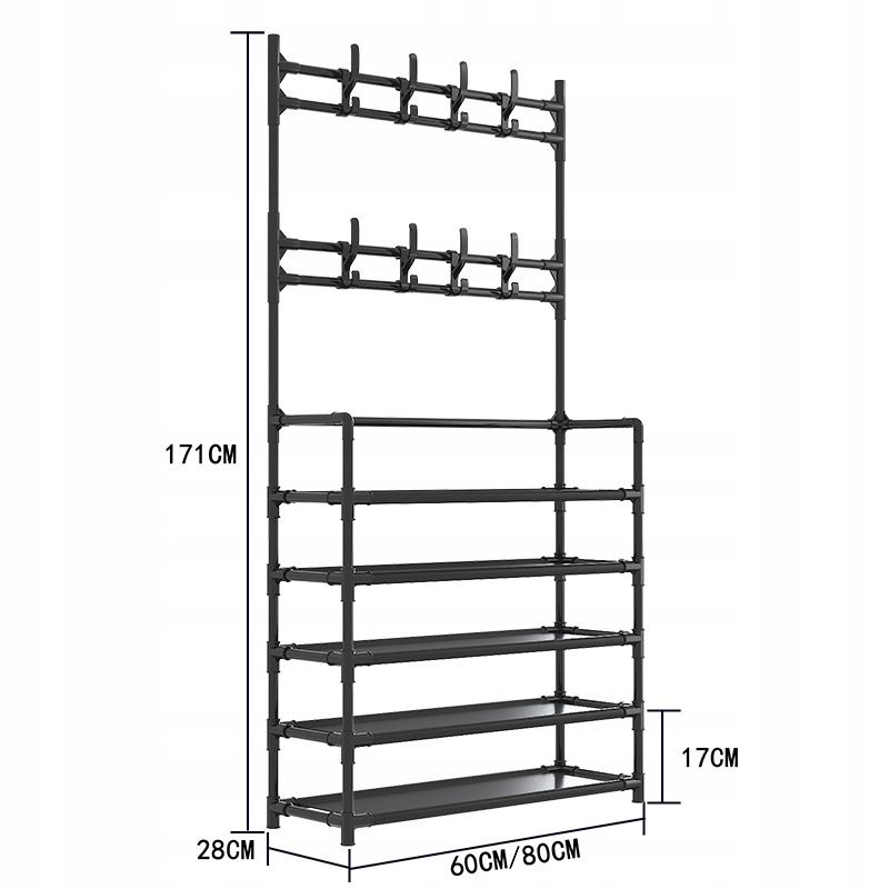 SZAFKA REGAŁ PÓŁKA STOJAK NA BUTY KAPELUSZE STALOWA WIESZAKI 5 POZIOMÓW