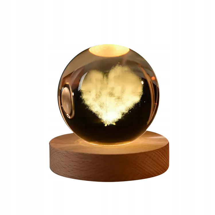 SZKLANA KULA Lampka 3D NOCNA 6cm Zasilana USB dla DZIECI do Sypialni SERCE