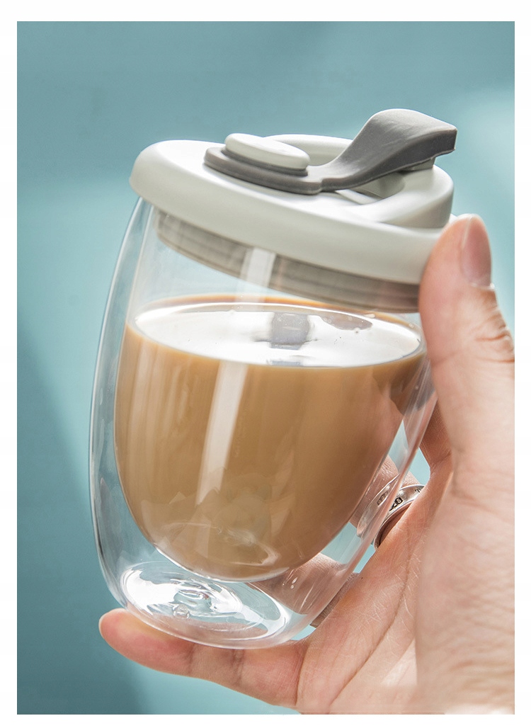Świetna dwuwarstwowa szklanka o pojemności 350ml z wygodnym zamknięciem. Idealna do kawy herbaty oraz zimnych napojów.