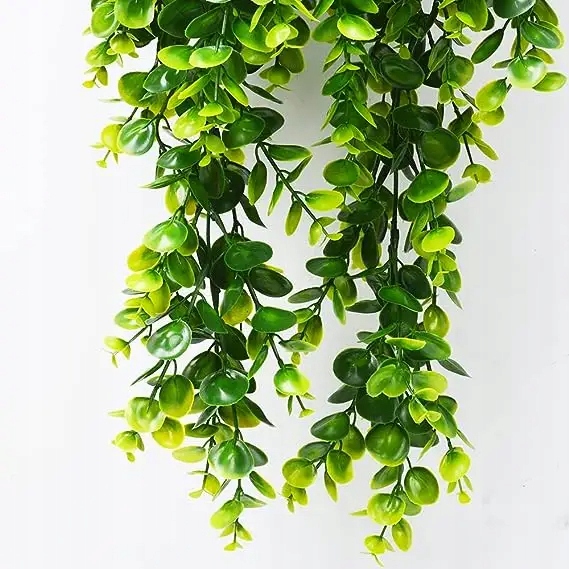 Aranżacja: Dzięki naturalnej kolorystyce i bogatej strukturze, nasza sztuczna wisząca roślina eukaliptusowa doskonale komponuje się z różnymi stylami wnętrzarskimi, od klasycznych po nowoczesne. Możesz ją zawiesić w dowolnym miejscu, by dodać świeżości i zieleni bez potrzeby podlewania.