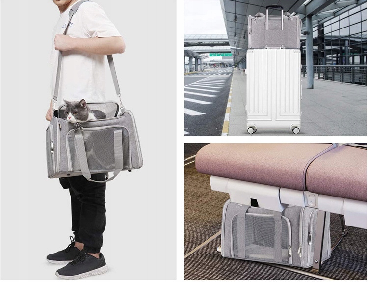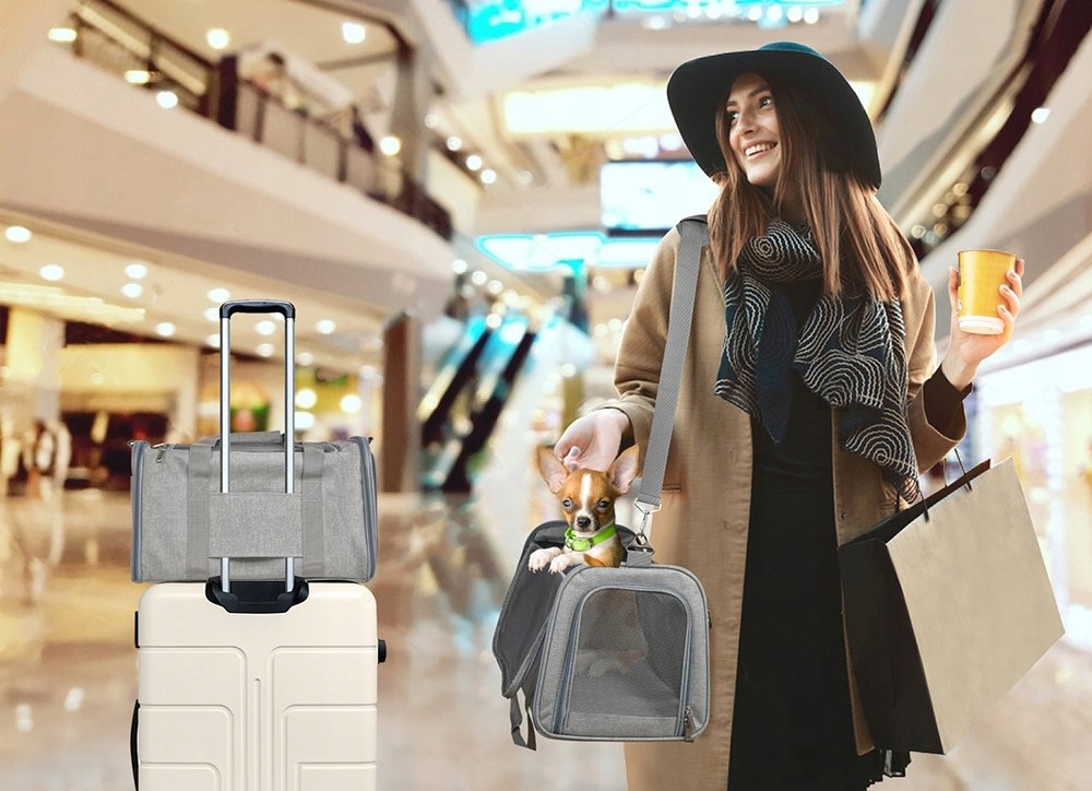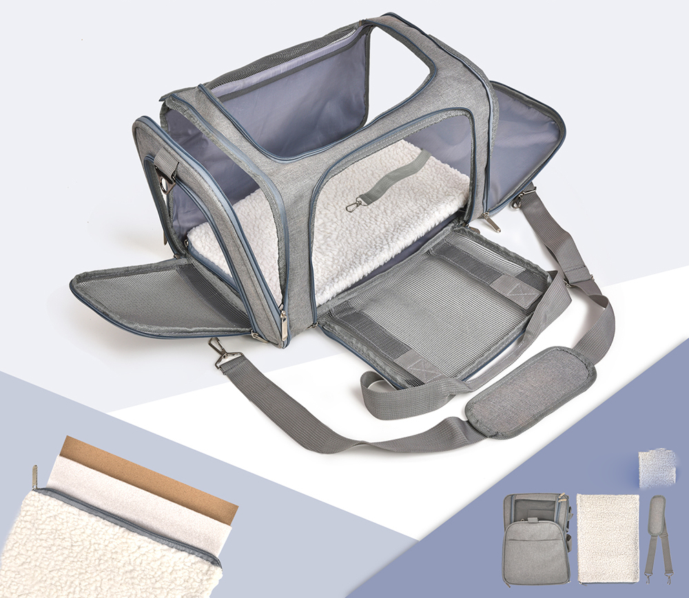 - Podpinana smycz bezpieczeństwa w środku torby - można przypiąć do obroży transportowanego aby mieć pewność, że po otwarciu nie ucieknie