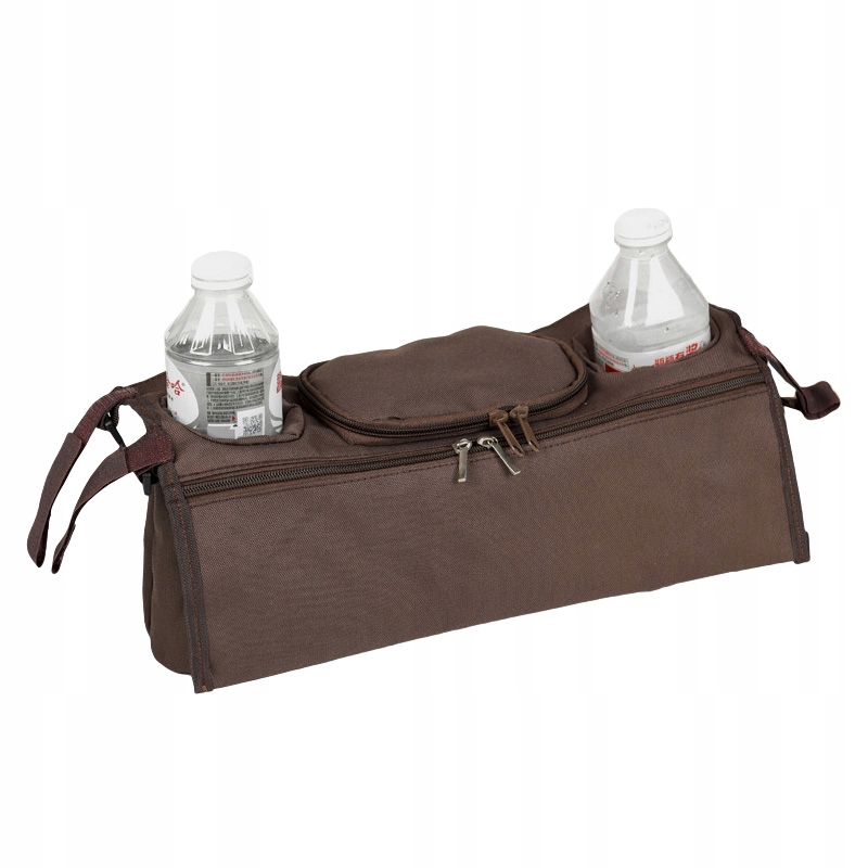 Uchwyt ORGANIZER do WÓZKA DZIECIĘCEGO Butelki TORBA Podwójny SZEROKI Brąz