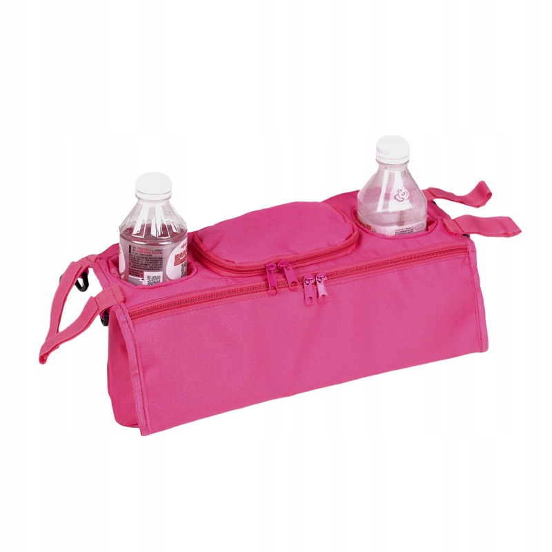 Uchwyt ORGANIZER do WÓZKA DZIECIĘCEGO Butelki TORBA Podwójny SZEROKI Roż