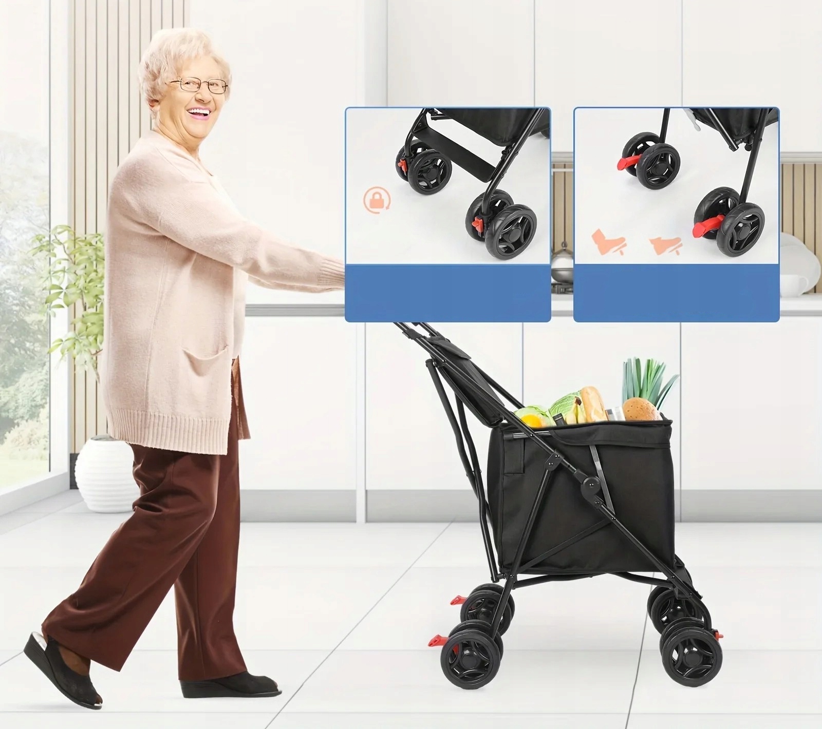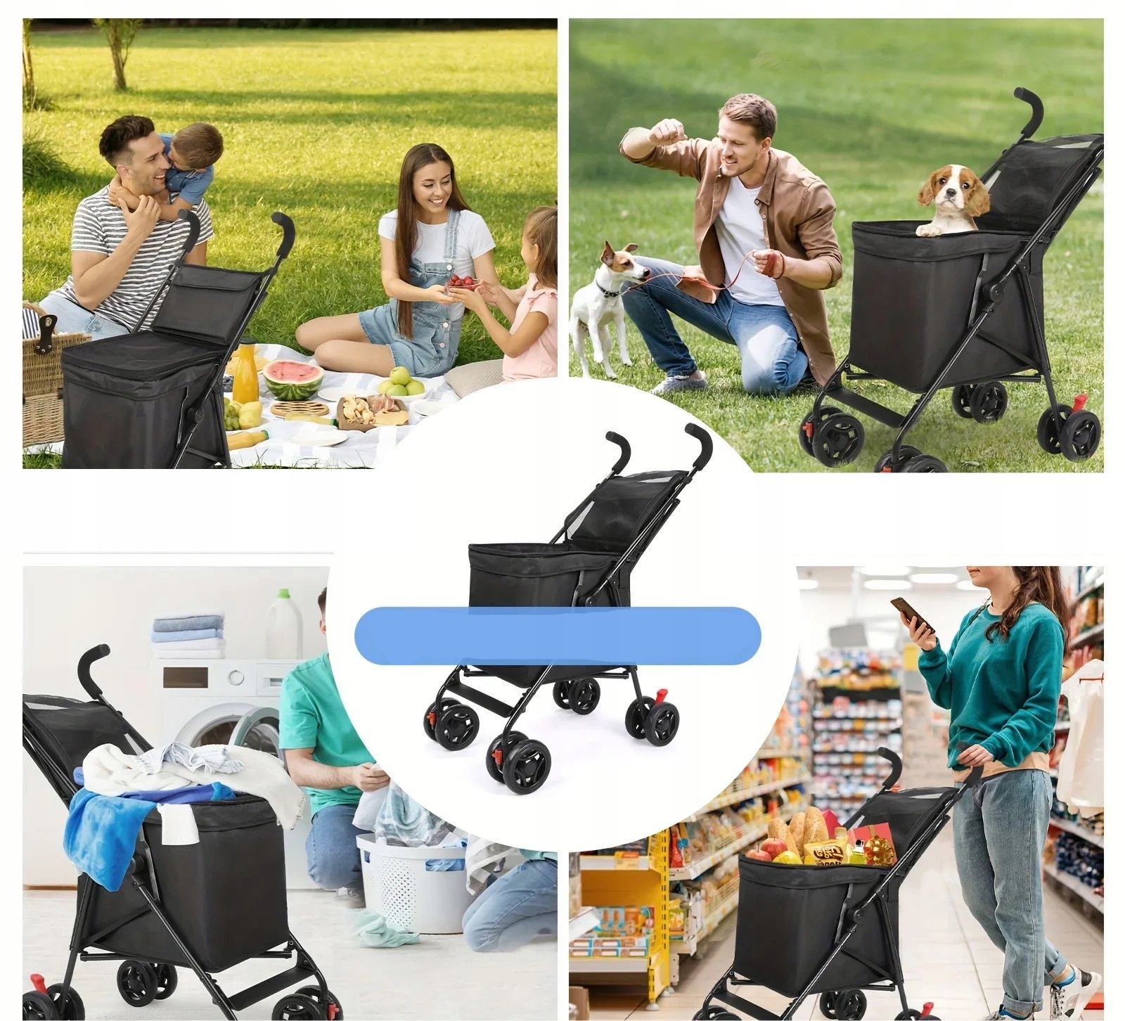 Wielofunkcyjność – idealny do przewożenia zakupów, transportu prania, na piknik, a także jako wózek spacerowy dla psa lub kota