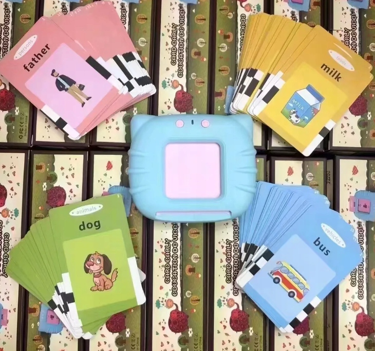 - Zestaw Edukacyjny: W komplecie otrzymujesz czytnik kart w kształcie uroczego kotka oraz 112 dwustronnych kart, czyli 224 słowa podzielone na 12 kategorii.