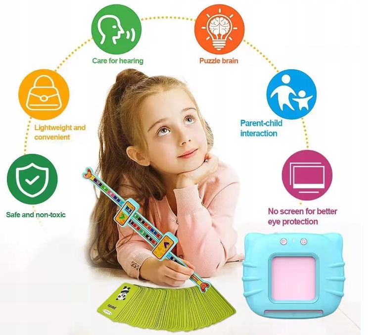 Zacznij Naukę Angielskiego z Uśmiechem! Z naszym czytnikiem Twoje dziecko otworzy się na nowe słownictwo, ciesząc się każdą chwilą spędzoną z kolorowymi kartami. To doskonały prezent, który łączy edukację z dobrą zabawą. Zamów już dziś i zobacz, jak Twoje dziecko rozwija swoje umiejętności językowe w oczach!