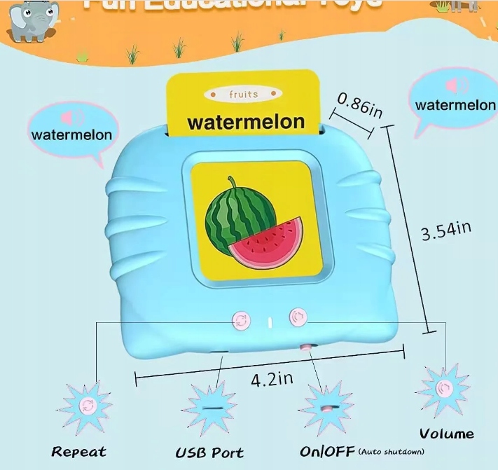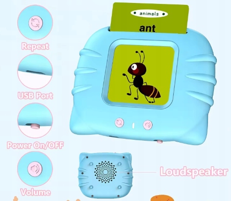 - Interaktywne Doświadczenie: Gdy karta jest włożona, czytnik wypowiada słowo, umożliwiając dziecku nauczenie się i praktykowanie wymowy.