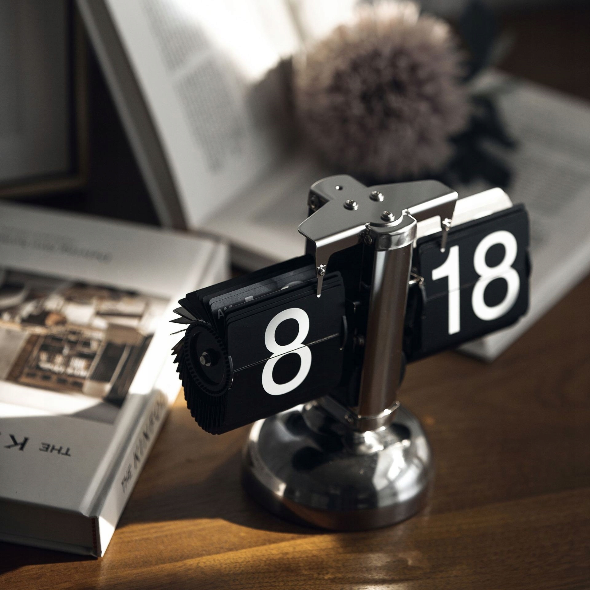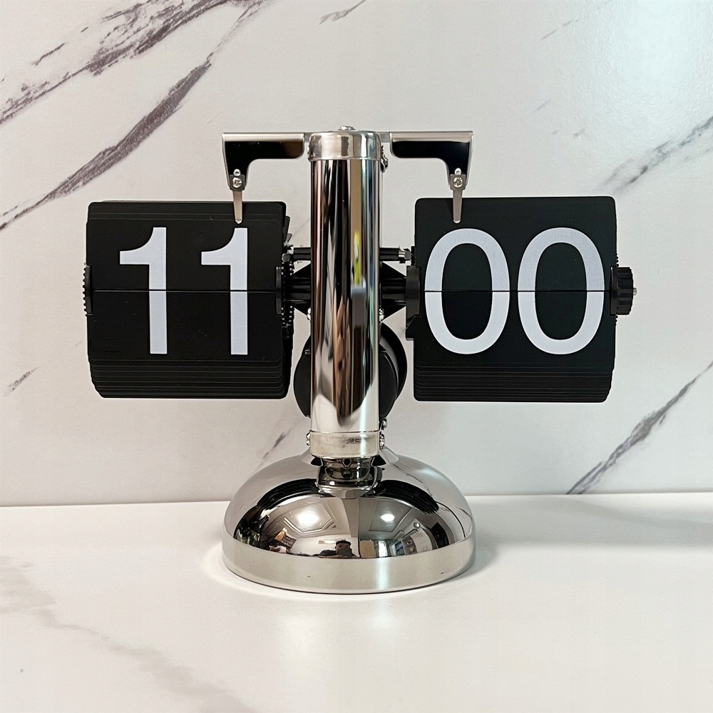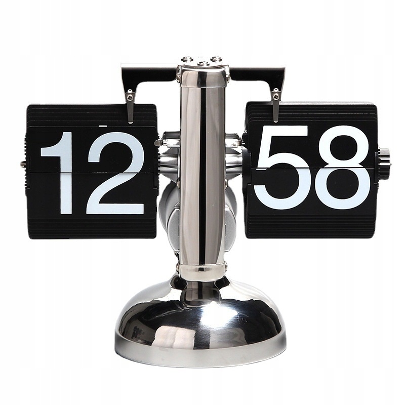 Unikalny i stylowy design: Zegar klapkowy łączy w sobie nowoczesny minimalizm i styl retro, nawiązując do klasycznych zegarów mechanicznych. Jego luksusowy wygląd i chromowana powierzchnia sprawiają, że będzie wyróżniającym się elementem każdej przestrzeni, niezależnie od tego, czy postawisz go w biurze, salonie czy sypialni.