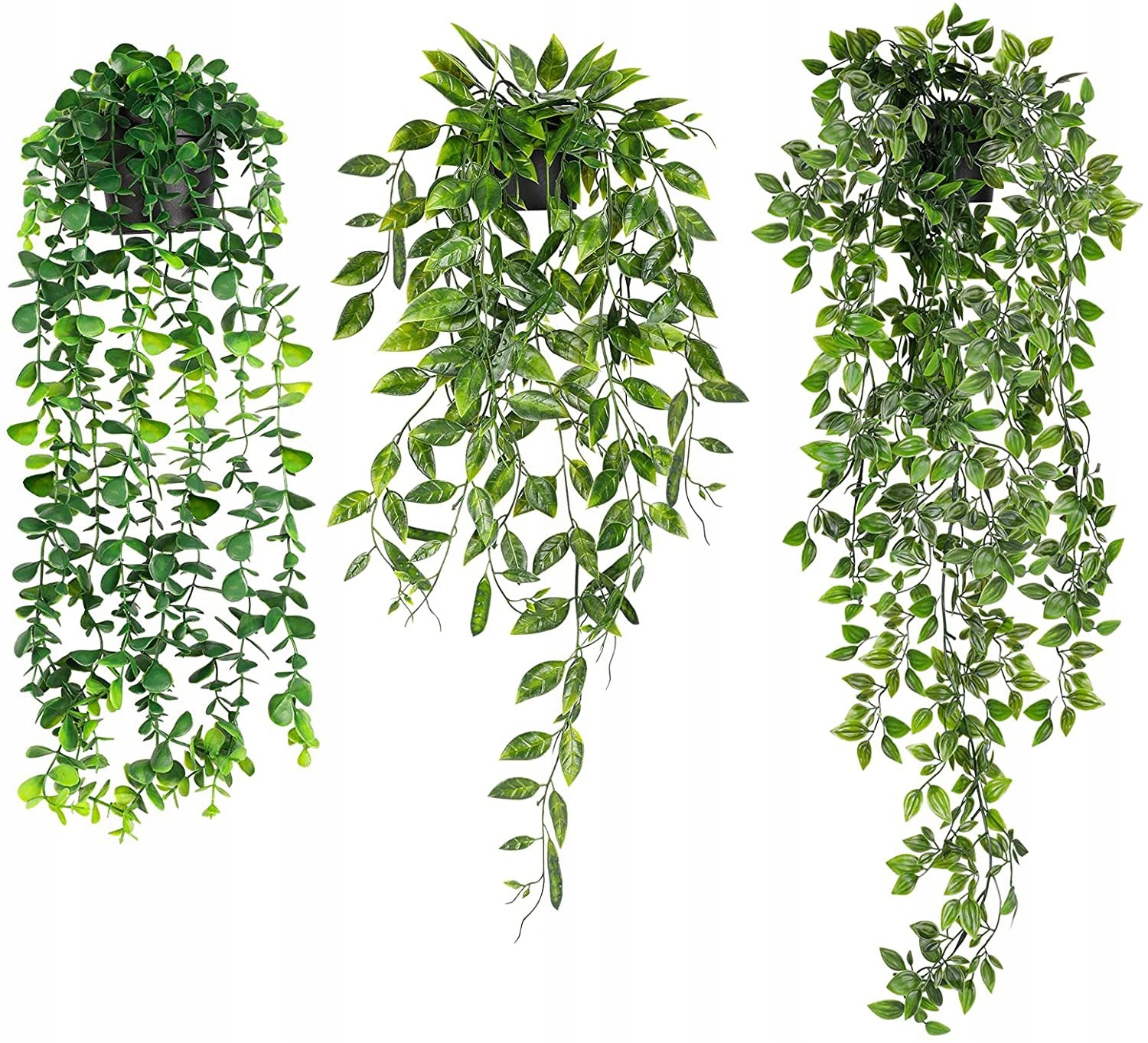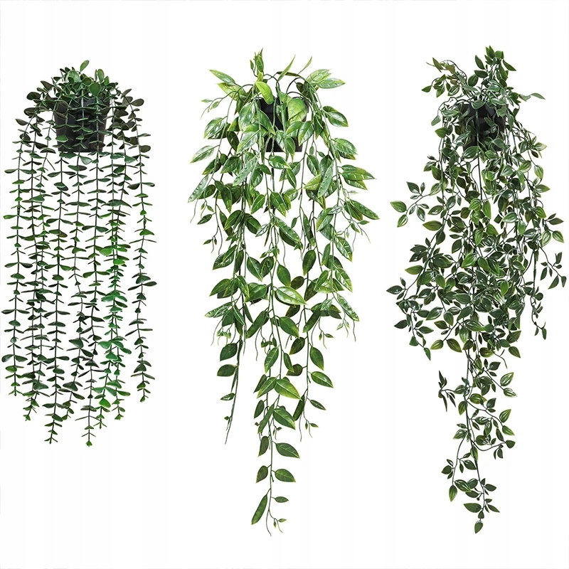 - 3 różnorodne sztuczne rośliny wiszące (bez doniczek)