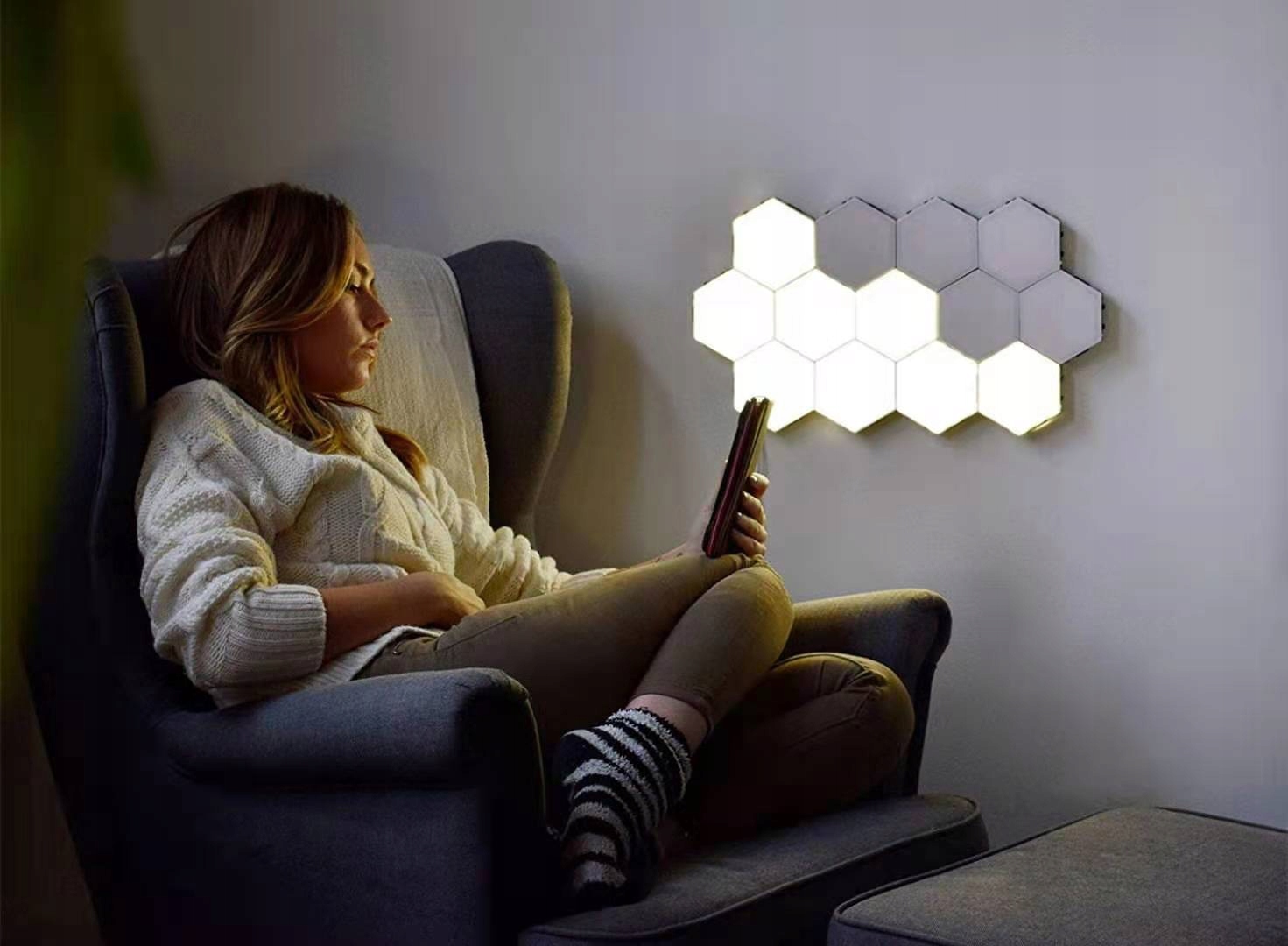ZESTAW 8 SZTUK LAMPA LED NA ŚCIANĘ HEXAGON SZEŚCIOKĄT BIAŁA DOTYK Kwantowa