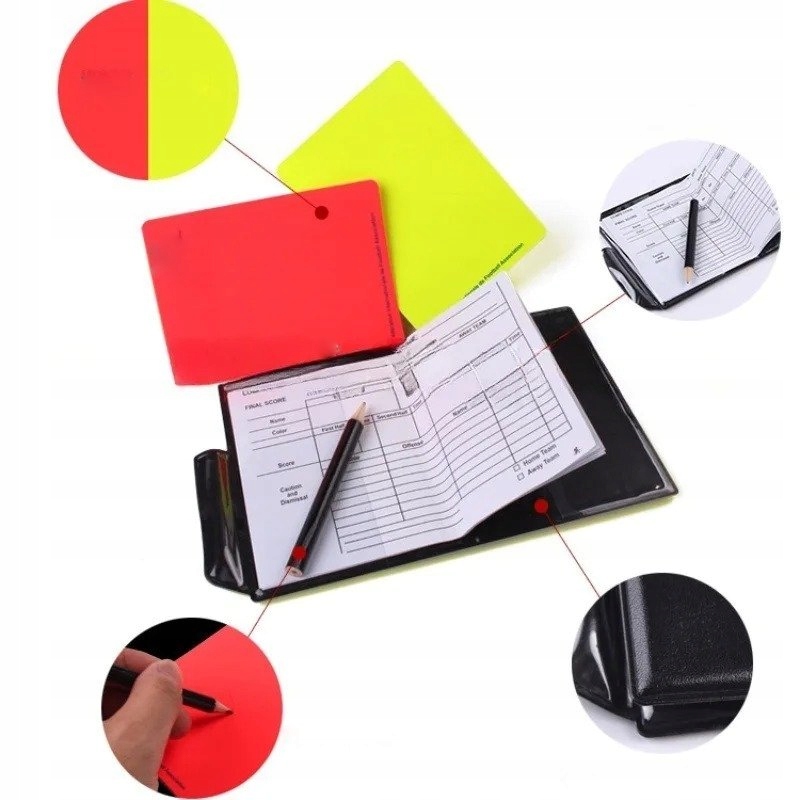 Zestaw sędziowski kartki sędziego piłki nożnej notes ołówek piłkarski