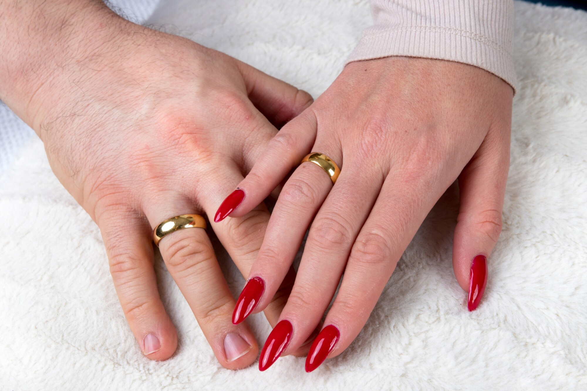 Obrączki 2 sztuki w kolorze złotym, polerowane - idealne dla par na ślub lub jako zastępstwo oryginalnych obrączek. Na innej naszej aukcji 1 sztuka.